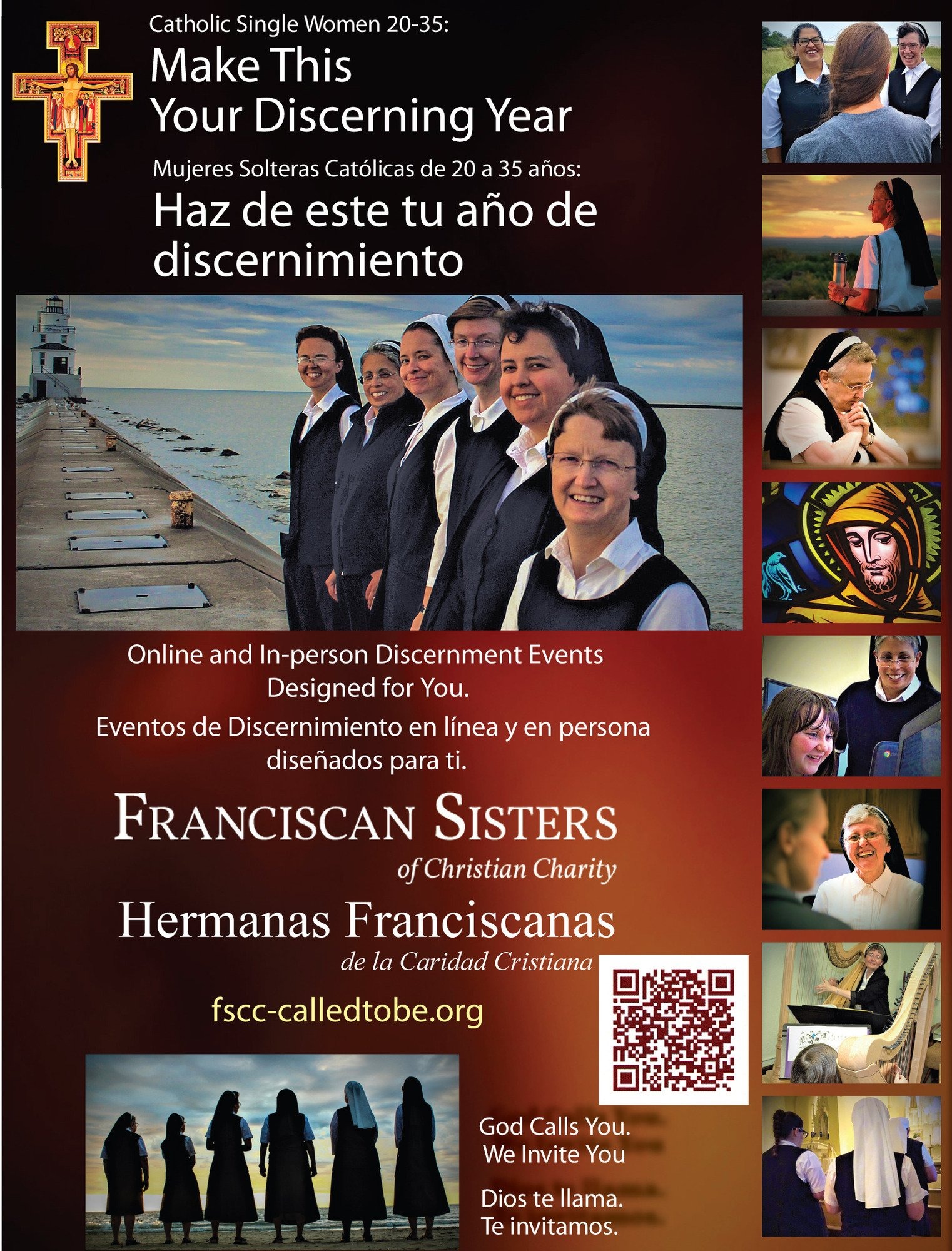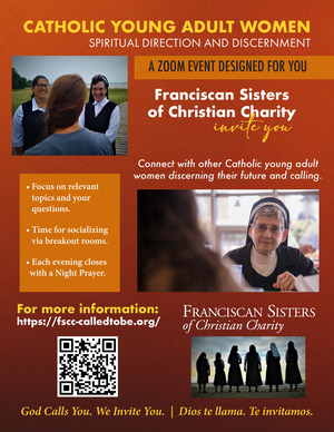 The Franciscan Sisters of Christian Charity in Manitowoc invite single women ages 20 to 35 to consider a call to their way of life! Please see the attached images and flyers for how to start a conversation with them and arrange a visit, and visit https://fscc-calledtobe.org/ to learn more about the community.