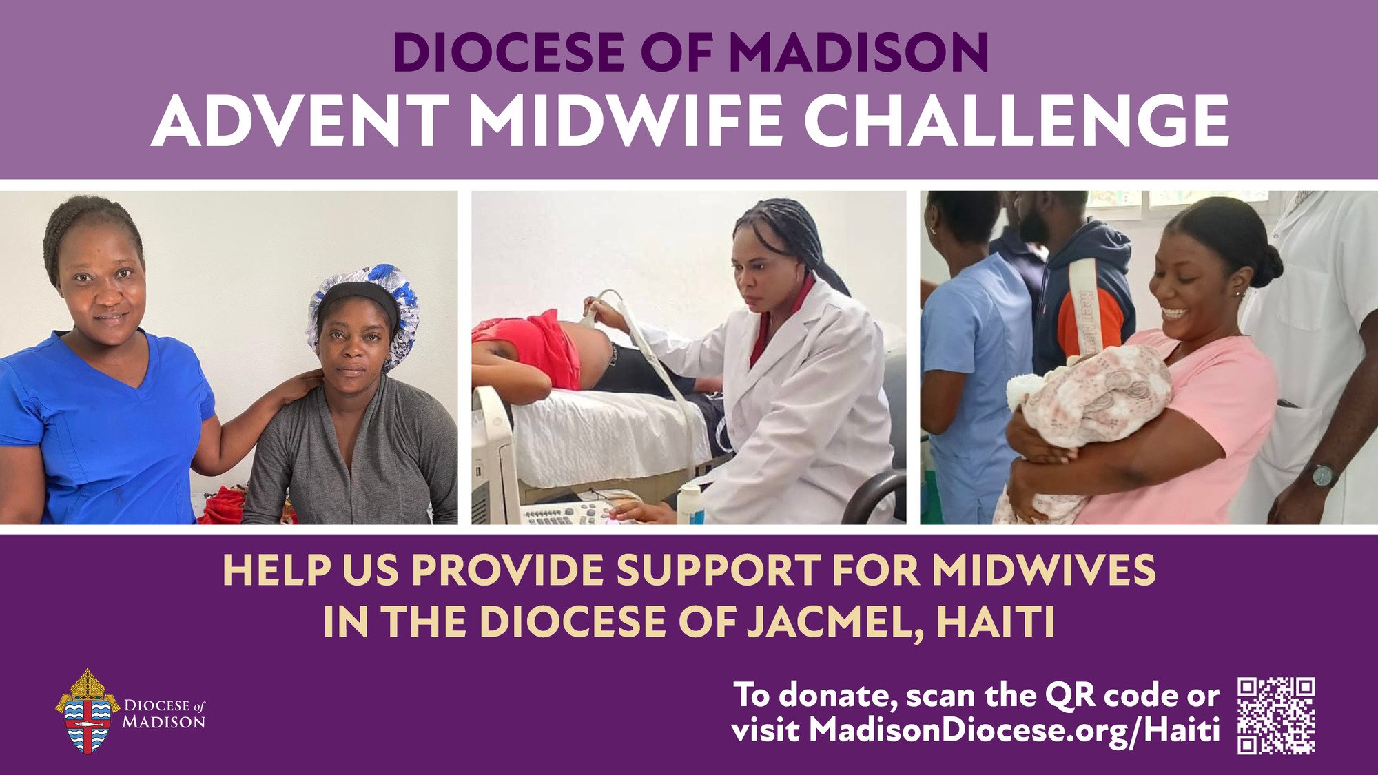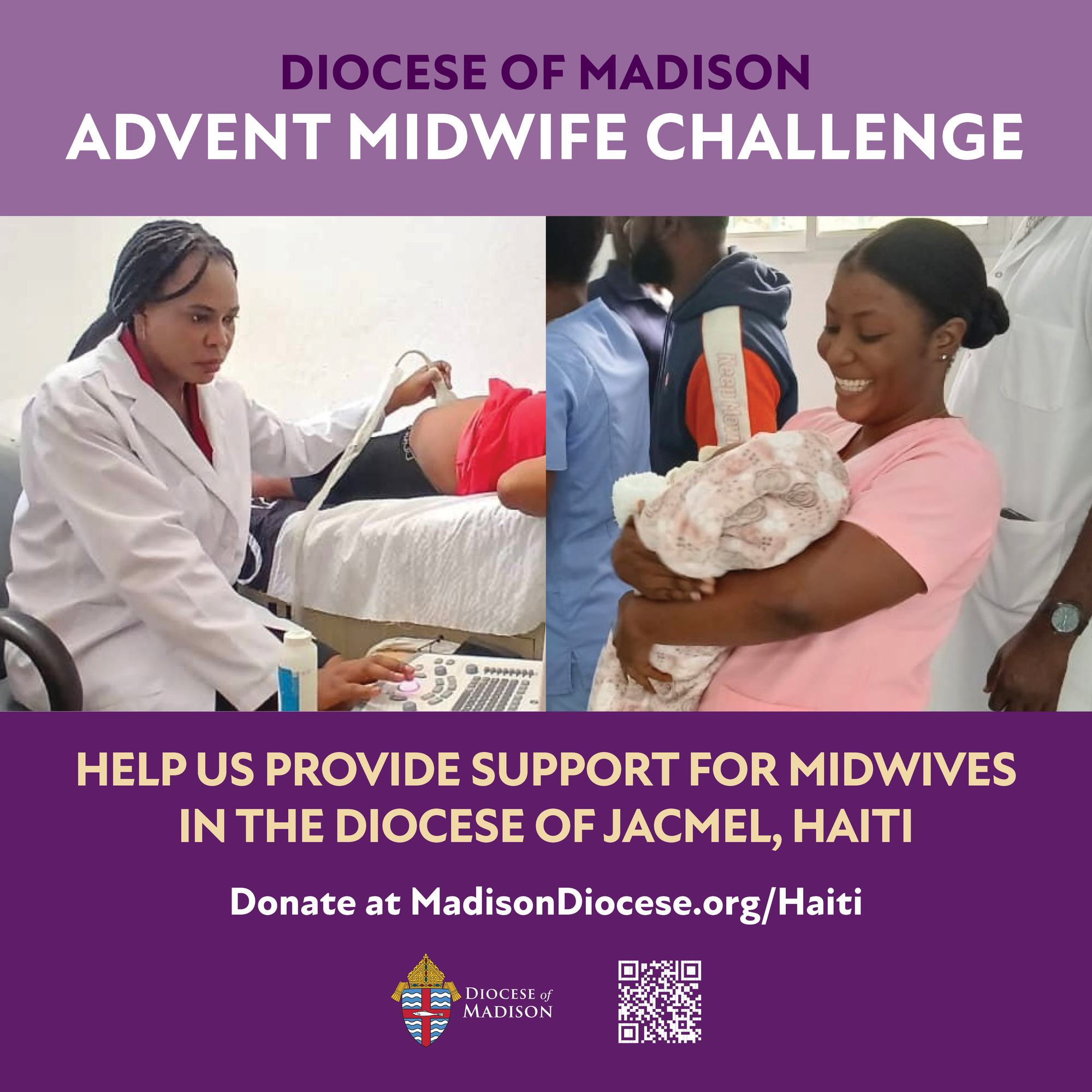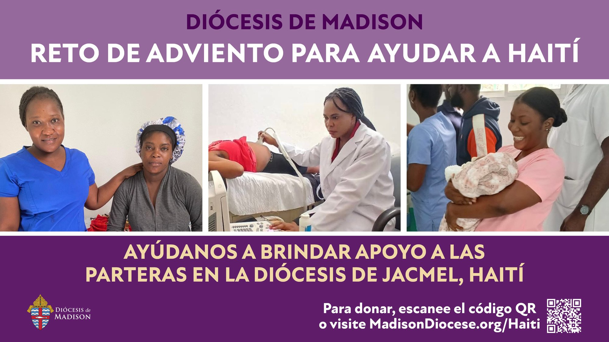 Únase al Obispo Hying para apoyar a nuestra diócesis hermana de Jacmel, Haití, con una donación al Reto de Adviento para las parteras contratadas en Haití. Nuestro objetivo es recaudar $25,000 para pagar los salarios de dos parteras del Centro de Salud Sagrado Corazón de Thiotte (CSST). Estas parteras brindan servicios importantes a la infraestructura sanitaria de Jacmel; al atender a mujeres embarazadas y asistir partos, dan el tiempo a otras clínicas y médicos para que ellos brinden otros recursos y servicios a sus comunidades.